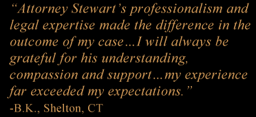 Often clients find that areas of their legal concerns overlap. With his extensive breadth and depth of experience through every level of the court system -- from probate, housing, civil and criminal, superior, appeals, to the Connecticut Supreme Court -- Attorney Stewart can guide his clients from start to finish toward a successful and timely resolution.